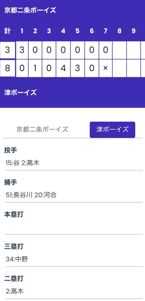 1回戦 京都二条ボーイズ VS 津ボーイズ 3-8◯