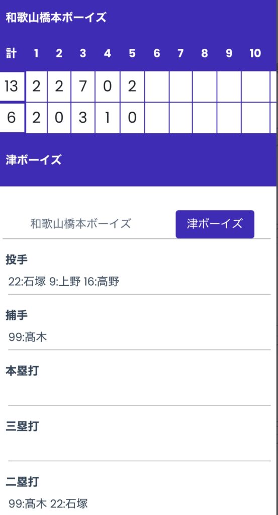 vs 和歌山橋本ボーイズ 6-13 ⚫️