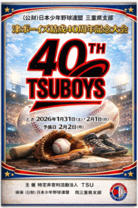このたびは「津ボーイズ結成40周年記念大会」に際し、多大なるご支援とご協力を賜り、誠にありがとうございました。 本日は小学部を町屋ベイ津B専用グラウンドにて開催し、優勝:四日市ボーイズ、準優勝:愛知豊橋ボーイズという結果 […]