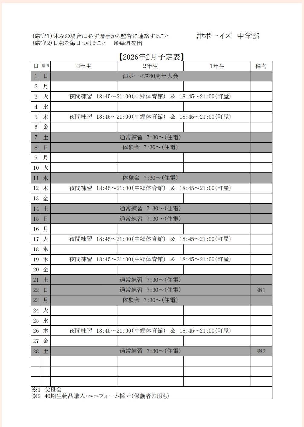 スケジュール表(PDF)令和8年02月(準備中)